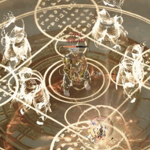 金刚乱舞:金刚斗神将积蓄的金刚之力释放出来,短暂的延迟后会进行五次连续的攻击,每次攻击后会更换目标,对命中的目标造成大量伤害并直接添加石化效果(可格挡),每次攻击均为半径8M的范围伤害,若范围内存在其他目标,则会直接给范围内的目标添加石化效果(不可格挡)